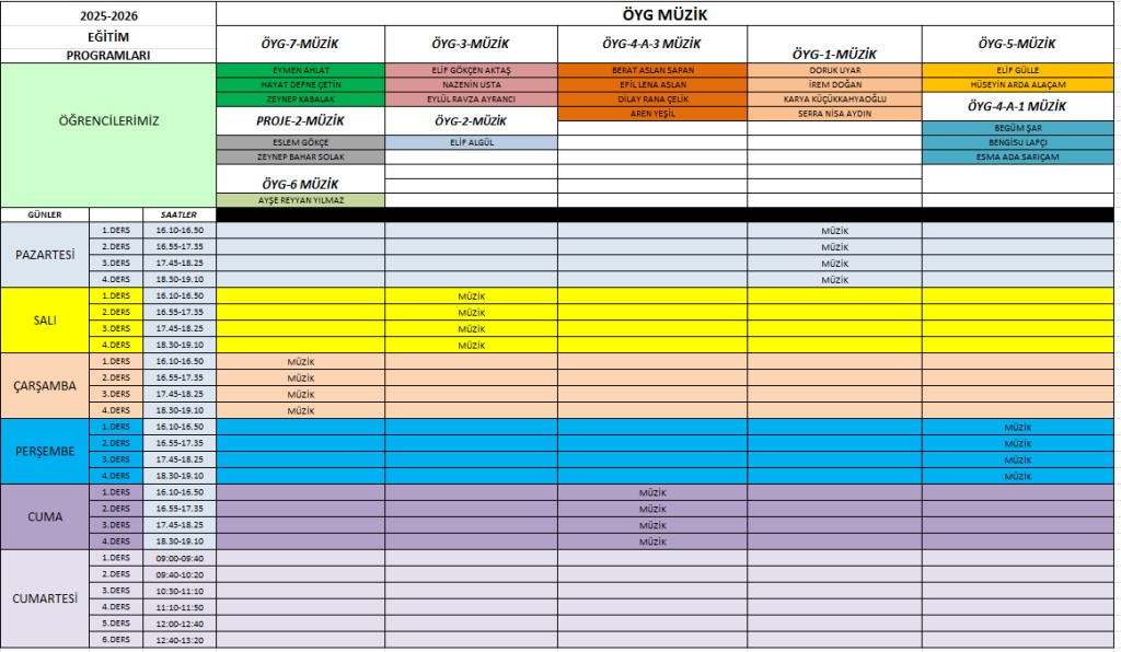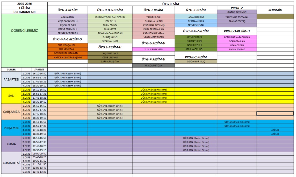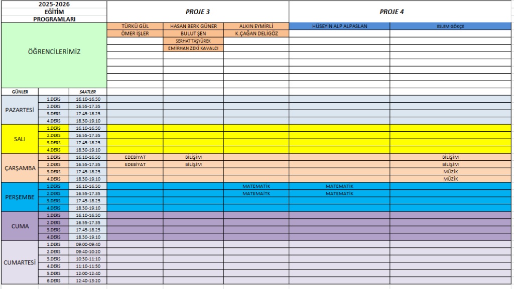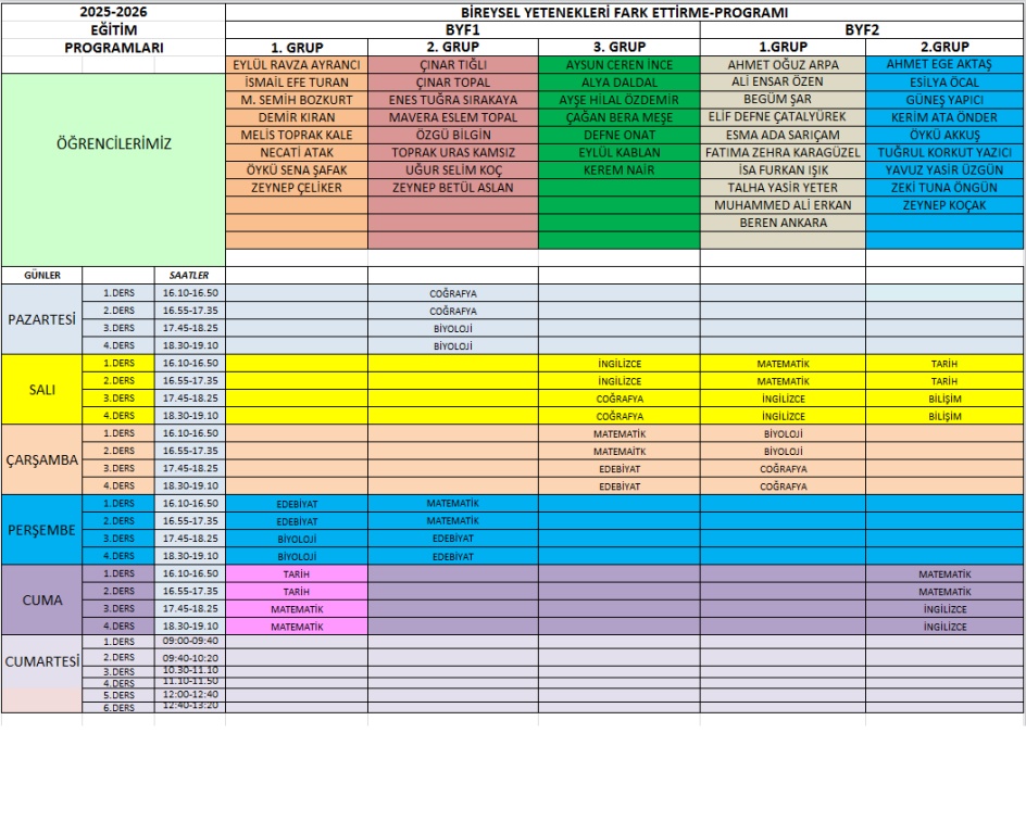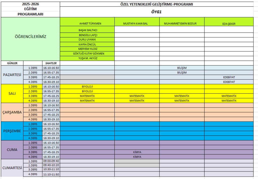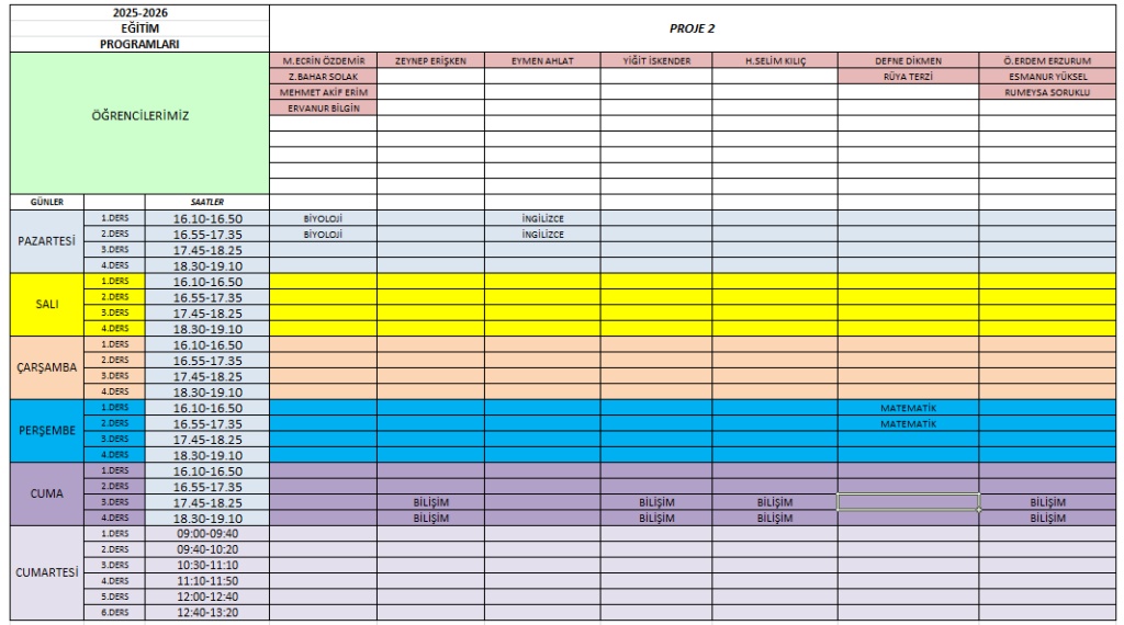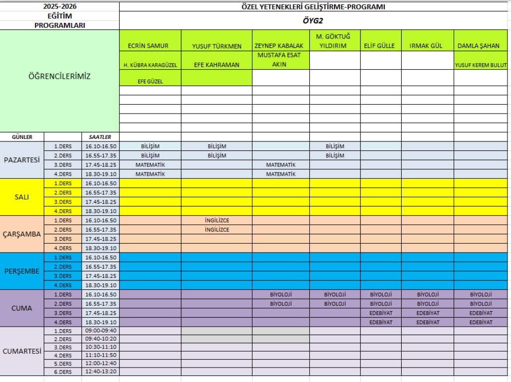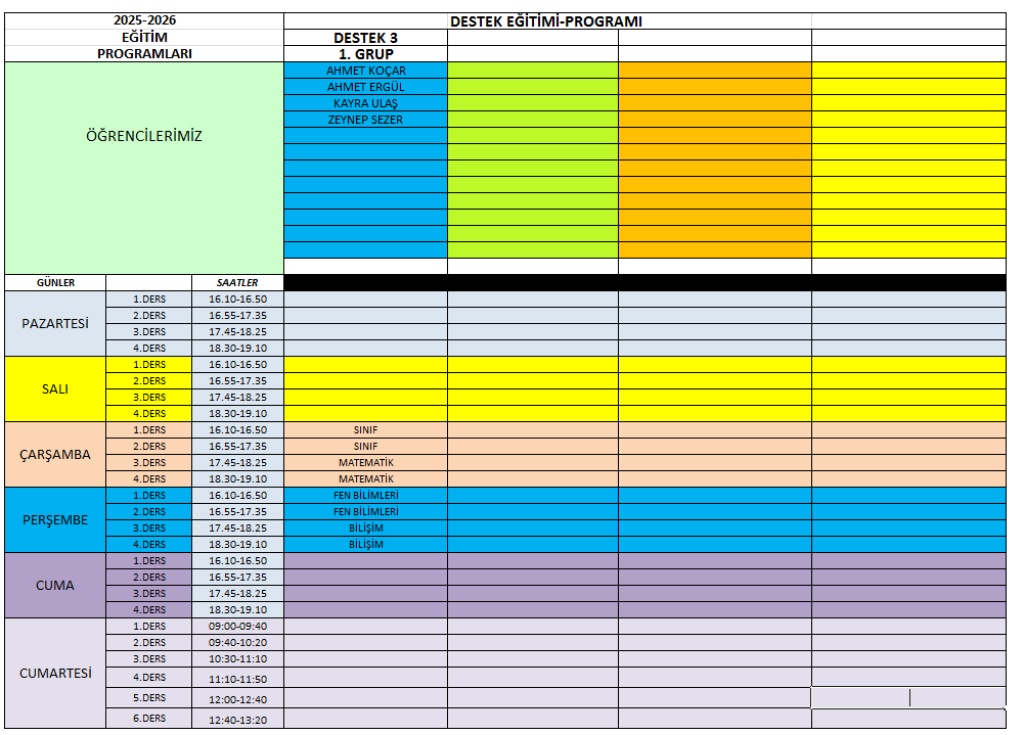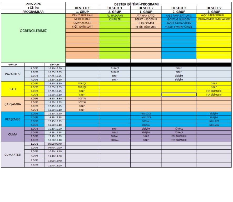 2025-2026 EĞİTİ ÖĞRETİM YILI GÜNCEL DERS PROGRAMIMIZ